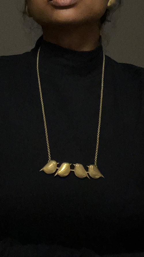 Four Birds on a Branch Gold Necklace